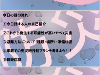 今回は防災の話を保健師の友末さんにしていただきまし […]