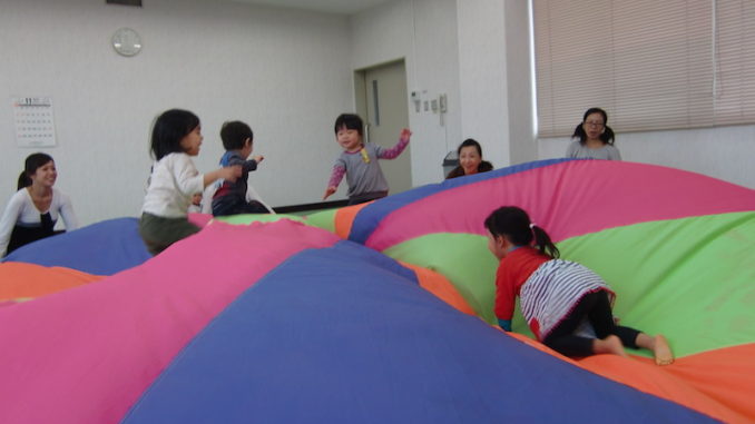 小笠原 資子先生を講師にむかえて 9組の親子が 身体をいっぱい