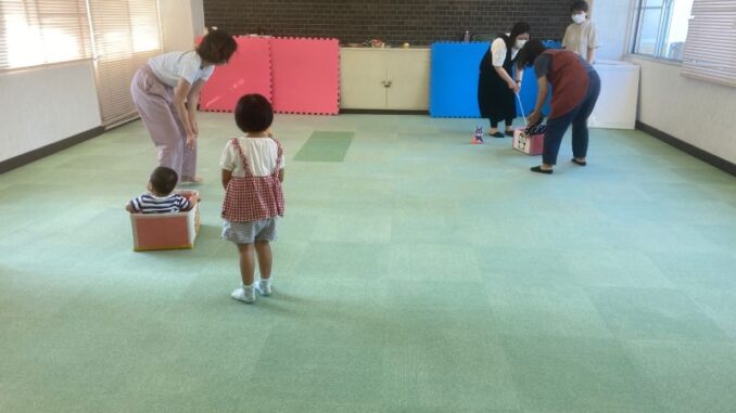 9月「おたのしみ会」 2022年10月3日 koenhiroba 地域の人たちと 0 学生ボランティアさんとパネルシアターをしたり、あひるのダンスをして楽しみました。 働くくるまのペープサートのあと、箱車に子どもが乗って、お母さん達に引っ張ってもらって、すごくたのしそうでした。