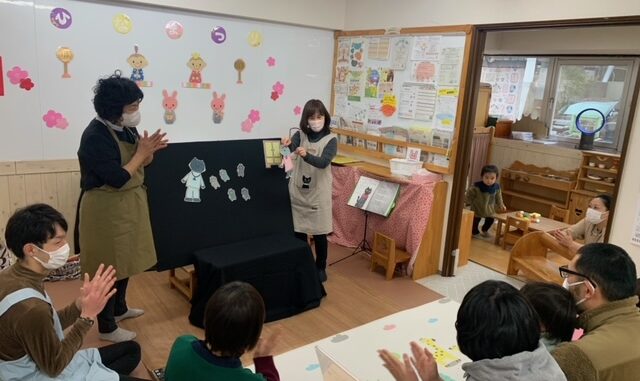 ひよこちゃん。猫のお医者さん。人形劇で 子豚 タヌキ ねこ