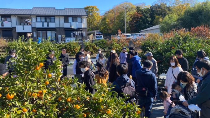 味見してお気に入りの木を探したり、みかんの木の前で写真を撮ったり?晴れの良いお天気で居心地も良く、ボランティアさんとおしゃべりしながら満足するまで畑で過ごしました。