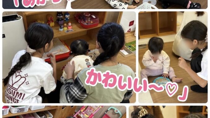 こえんひろばに小学4年生のおねえちゃん達が遊びに来てくれました。この日のために、3人で「何をしようか?」と色々相談してくれたみたいで、ピアノ伴奏付きの手遊びや紙芝居、絵本も読んでくれました♪また、遊びに来てくださいね!
