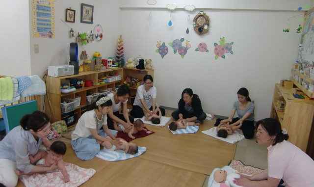 赤ちゃんの日にベビーマッサージセラピストの畑中 希先生に来てもらいました。