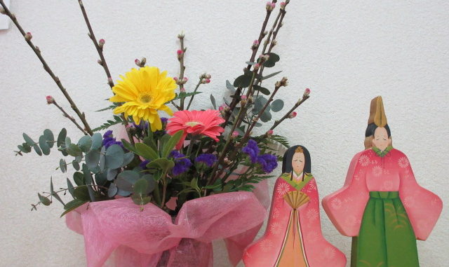 生花で節句をイメージして 池坊の峠先生に今回も来て頂きました。